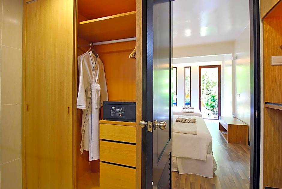 This quadruple room features a balcony, seating area and air conditioning.